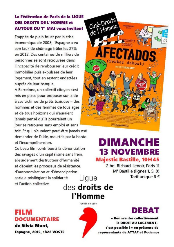 La fédération de Paris de la Ligue des Droits de l’homme et Autour du 1er mai vous invitent à une projection rencontre exceptionnelle autour du film Afectados, qui sera diffusé en avant-première !