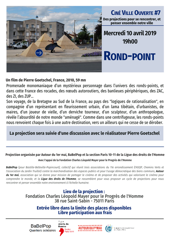 Nous vous invitons à la septième séance du cycle Ciné Ville Ouverte, coordonné par Autour du 1er mai, Babelpop et la Section Paris 10-11 de la Ligue des Droits de l’Homme.
