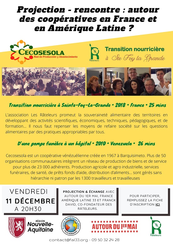 Dans le cadre de notre coopération avec le comité Bordeaux Gironde de France Amérique latine, nous vous proposons une soirée de projections-rencontres autour de la thématique des coopératives, en France et en Amérique latine.