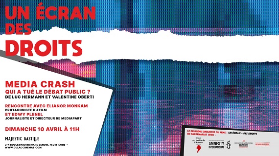 Pour cette nouvelle séance de notre cycle mensuel, nous vous proposons de découvrir le film Media Crash - qui a tué le débat public ? de Luc Hermann et Valentine Oberti, salutaire piqûre de rappel de l’hyper-concentration des médias en France.