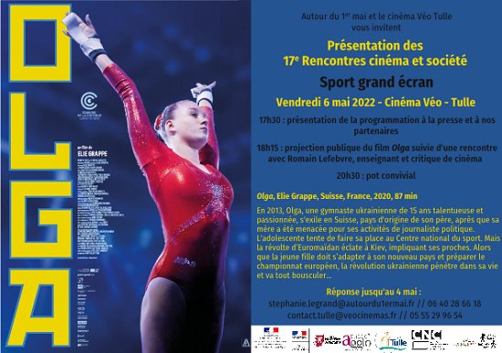 - 18h15 : projection-rencontre publique, ouvertes à tous et toutes du film Olga, d’Élie Grappe (invitation pour la soirée offerte à nos partenaires et aux journalistes)