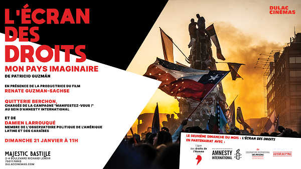 Amnesty International programme dans le cadre de notre cycle commun l’Écran des droits le film de Patricio Guzmán Mon pays imaginaire, choisi à l’occasion de la campagne "Manifestez-vous !".