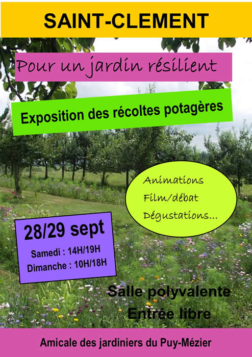 Venez assister à l’exposition des récoltes potagères de l’amicale des jardiniers de Puy-Mézier, autour de la thématique "Pour un jardin résilient". Animations, films, débats et dégustations sont au programme !